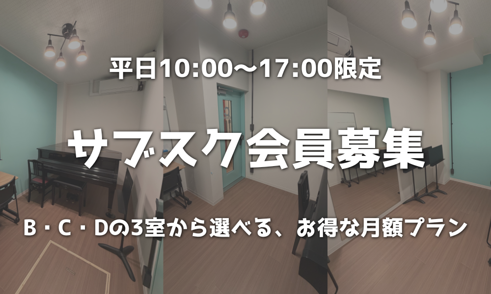 自宅で音を出すことが難しい方や、安心して集中できる環境で練習したい方にとって、スタジオは大切な「もうひとつの音楽の居場所」として、多くの方にご活用いただいています。